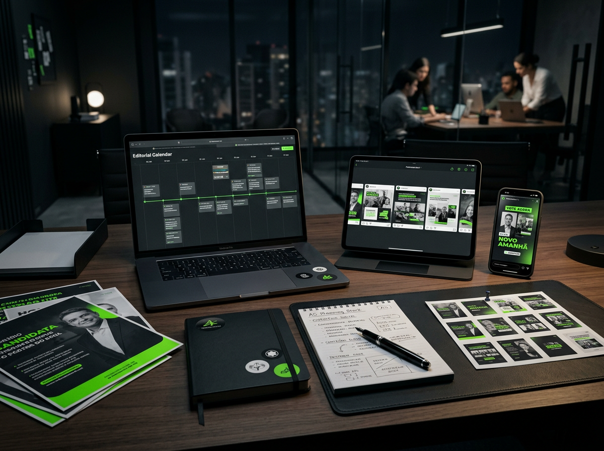 Uma estrutura criada para candidaturas que desejam aparecer com consistência, autoridade e velocidade no ambiente digital.